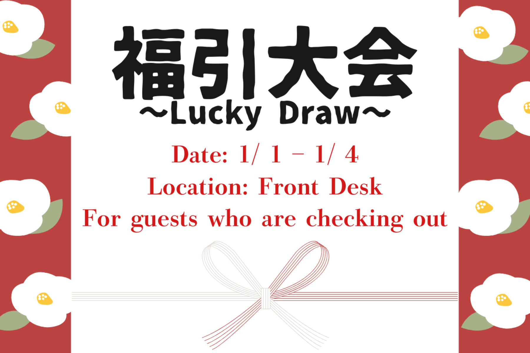期間中にチェックアウトされるお客様を対象に、フロントにてお一人様につき1枚、抽選箱からカードを引いていただき、その場で景品をプレゼント♪