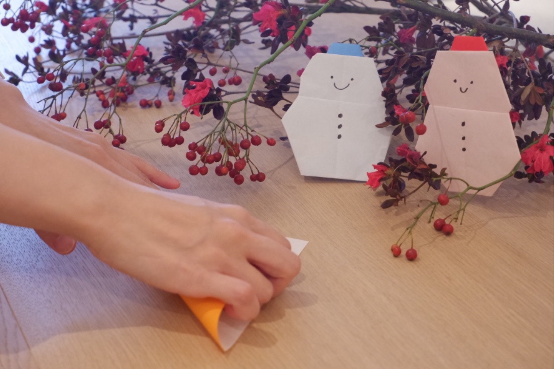 1Fロビーや2Fラウンジ にて、ゲストの皆さまと一緒に 雪だるまの折り紙 を作る無料イベントをご用意いたしました。